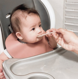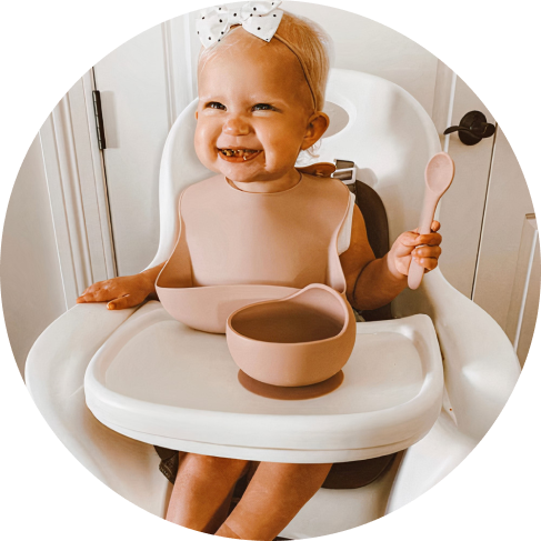5. Not sure why it took me so long to switch to silicone , pocketed bibs. These are amazing. Easy to clean. love the muted pink colors as well. Recommend for little ones just starting the finger foods!