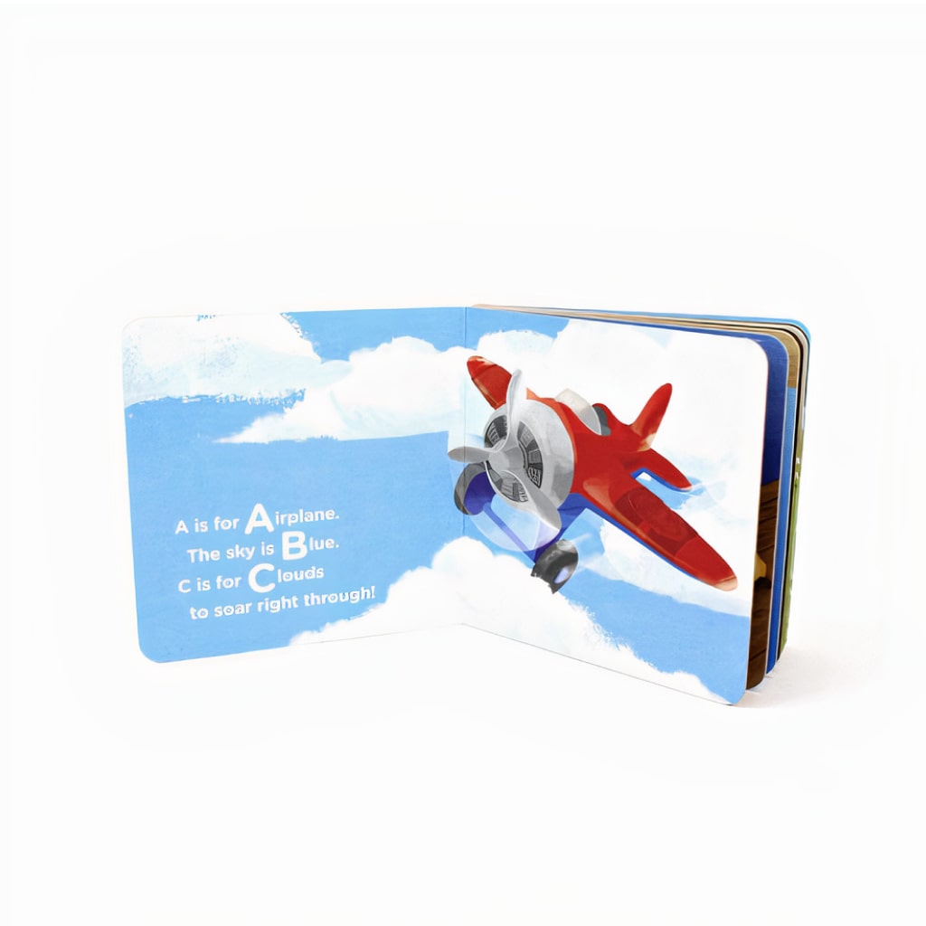 In A is for Airplane board book, the journey from A to Z is an adventure through air, land, and sea that brings the alphabet to life.